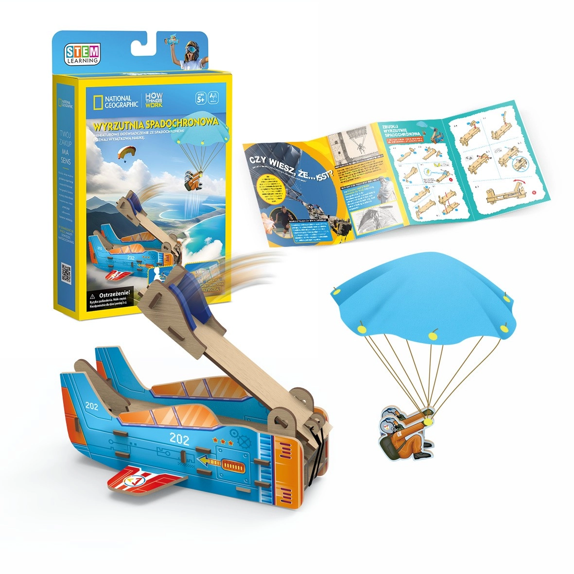 Ontdek een leuk en leerzaam model voor jonge wetenschappers: 3D-puzzel NATIONAL GEOGRAPHIC – lanceerbare parachute. Kinderen bouwen hun eigen werkend model en leren tegelijk hoe vliegen en een parachute werken. Inclusief een geïllustreerde handleiding en veel weetjes over vliegen, die nieuwsgierigheid, fijne motoriek en logisch denken ontwikkelen.
