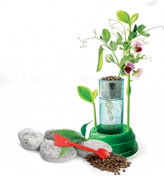 Bevat een container, standaard, pipet, schepje, zaden, hydrokorrels en houder – alles wat je nodig hebt voor de eerste pogingen met kweken zonder aarde.