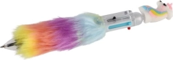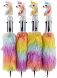 Kleurrijke pluche en een eenhoornfiguurtje maken kinderen en verzamelaars van schattige accessoires blij. De pen valt meteen op.