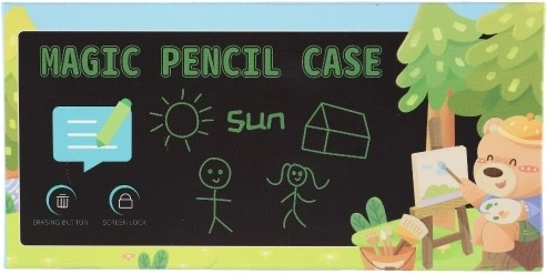 Praktische kinderetui met geïntegreerd LCD-bord voor tekenen en schrijven—organisatie en creativiteit in één. Biedt een herbruikbaar schrijfoppervlak, eenvoudig wissen en een schermvergrendeling. In het ruime vak berg je potloden en pennen veilig op, terwijl de compacte afmetingen in zowel rugzak als schooltas passen. CR2025-batterij inbegrepen.