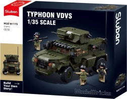 De Sluban Typhoon is een hoogwaardige bouwset voor alle fans van militaire techniek en actievol spel. Het model op schaal 1:35 blinkt uit door realistische details, zoals een draaibare toren, openende delen en authentieke accessoires voor de minifiguren. De set is gemaakt van duurzame en veilige ABS-kunststof en bevat een overzichtelijke handleiding.