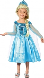 Prachtige carnavalsjurk in de stijl van de ijskoningin voor kleine prinsesjes. Ideaal voor kinderen van 3-4 jaar met een lengte van 92-104 cm.