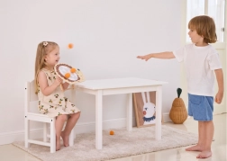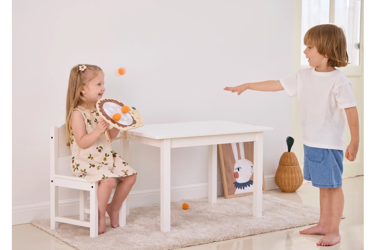 Dit houten speelgoed is ontworpen voor kinderen vanaf 3 jaar en biedt uitstekend speelplezier door gericht ballen naar het doel te gooien. Zo kunnen kinderen hun richtvaardigheid verbeteren. Bovendien is het speelgoed eenvoudig in en uit elkaar te halen, wat het transport en onderhoud vergemakkelijkt.
