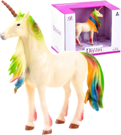 De opvallende manen en staart in regenboogtinten geven het figuur een magische uitstraling en nodigen uit tot spelen of tentoonstellen op de plank.