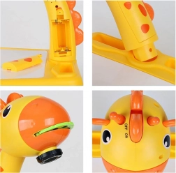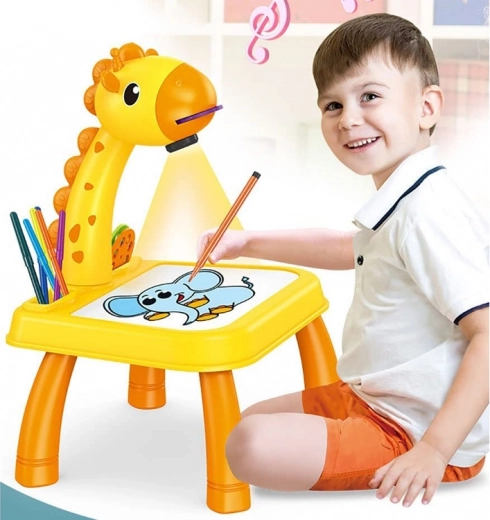 Deze kinderprojector in de vorm van een giraffe projecteert afbeeldingen op het tekenoppervlak, zodat kinderen ze gemakkelijk kunnen overtrekken en de juiste tekenstreken leren. De lichte en stabiele tafel kan met poten als mini-bureau worden gebruikt of zonder poten direct op het tafelblad.