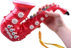 Deze kleurrijke kindersaxofoon is een geweldige start in de wereld van muziek. Na het schakelen van OFF naar ON word je verwelkomd met een vrolijke melodie en lichten de toetsen en de speaker op. Kinderen kunnen naar voorgeprogrammeerde nummers luisteren of zelf spelen – met de mogelijkheid om in het mondstuk te blazen voor een realistischer gevoel.