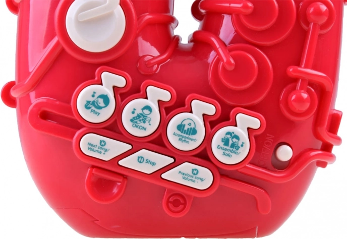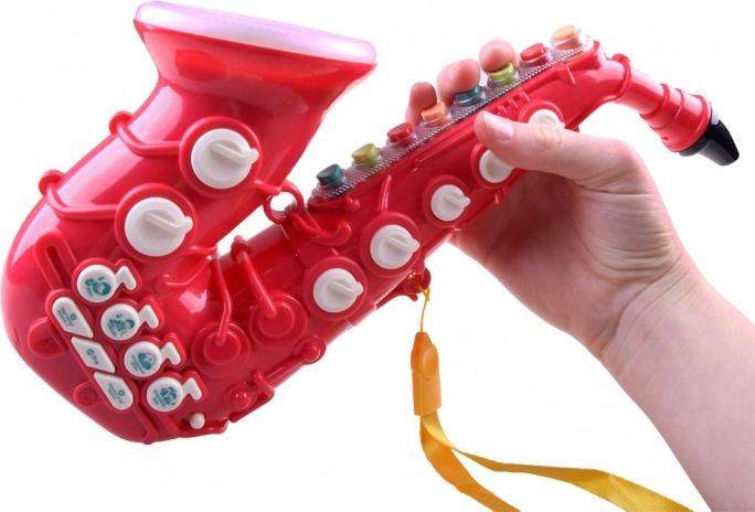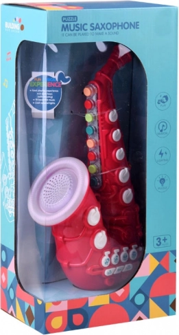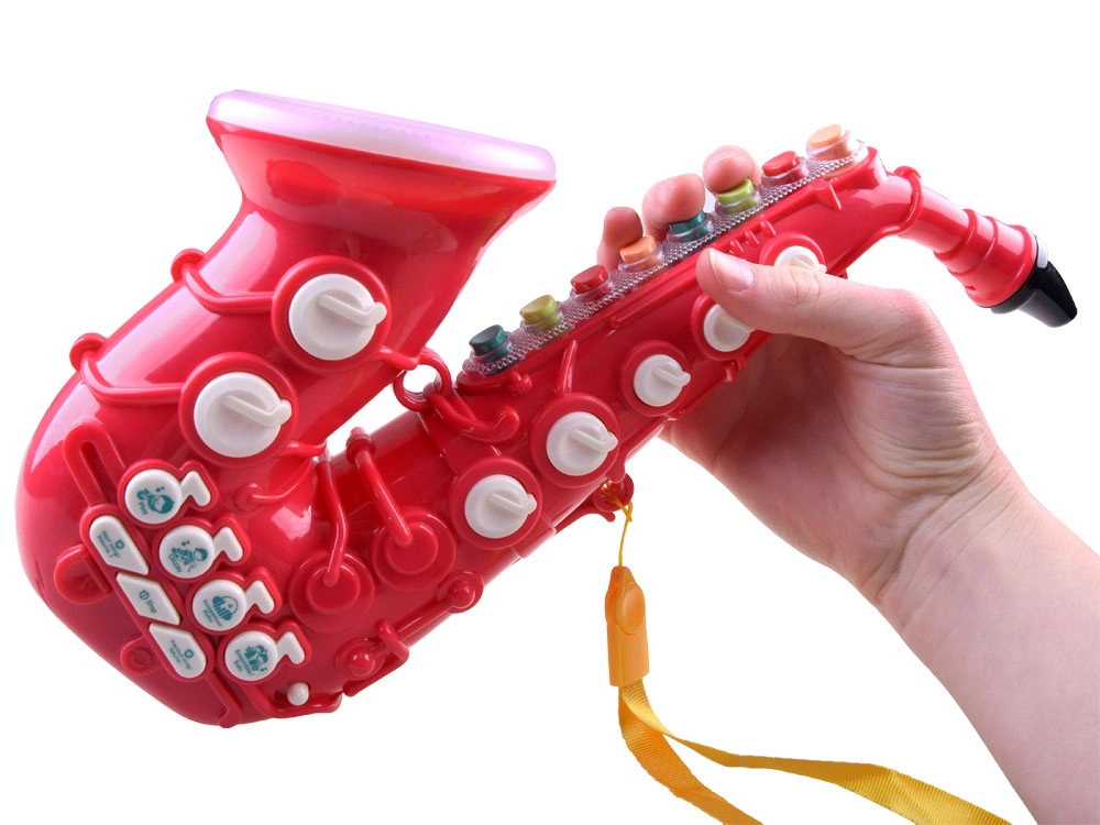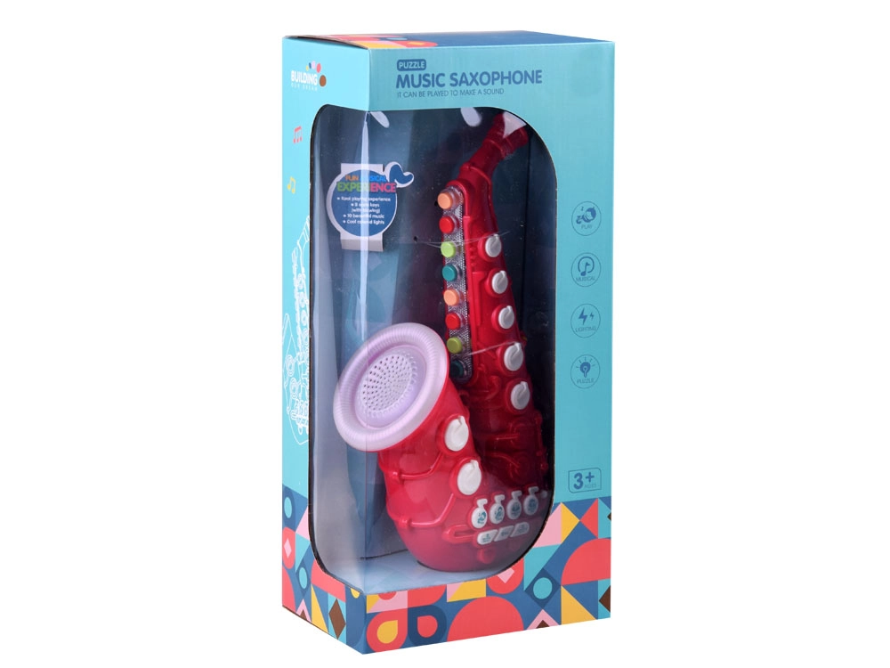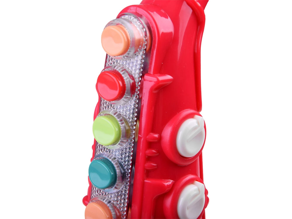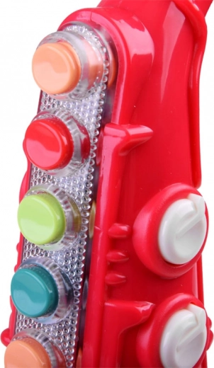 Deze kleurrijke kindersaxofoon is een geweldige start in de muziekwereld. Na het omschakelen van OFF naar ON word je verwelkomd door een vrolijke melodie en lichten de toetsen en de speaker op. Kinderen kunnen naar voorgeprogrammeerde liedjes luisteren of zelf spelen – met de mogelijkheid in het mondstuk te blazen voor een realistische beleving.
