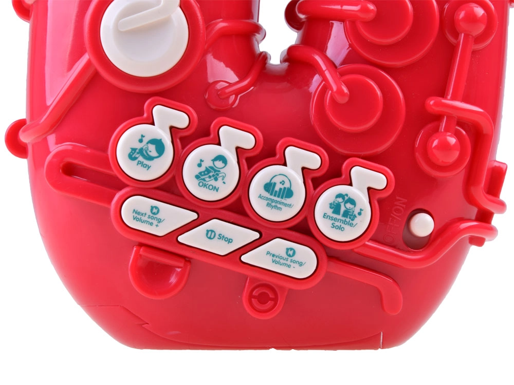Er zijn verschillende speelmodi, ritmische begeleidingen en vrije speelstand zonder begeleiding. De praktische draagband maakt comfortabel dragen om de nek mogelijk, zodat kleine muzikanten altijd en overal kunnen optreden.