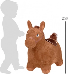 Het springpaardje combineert een duurzame opblaasbare kern met een zachte pluche hoes voor maximaal comfort en veiligheid tijdens het spelen. Kinderen kunnen zich vasthouden aan de grote oren, die helpen bij het bewaren van het evenwicht. Het ingestikte hoofdstel, het zachte zadel en de volle manen met staart geven het speelgoed een realistische look en nodigen uit tot nieuwe avonturen.