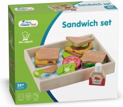 De houten box bevat alles wat nodig is om een smakelijke lunch of picknick “te bereiden”. Dankzij de kleurrijke en realistisch vormgegeven onderdelen kunnen kinderen verschillende combinaties stapelen en sandwiches maken volgens hun eigen fantasie. De set is een geweldige aanvulling op kinderkeukens en winkeltjes.