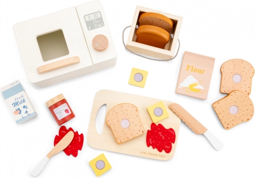 Breid de kinderkeuken uit met een houten broodbakkerij met accessoires voor kinderen vanaf 3 jaar. Een realistische knop en digitale timer stimuleren creatief spel, ontwikkeling van de fijne motoriek en leren door plezier. Inclusief veel accessoires voor het bereiden van brood en sandwiches.
