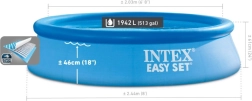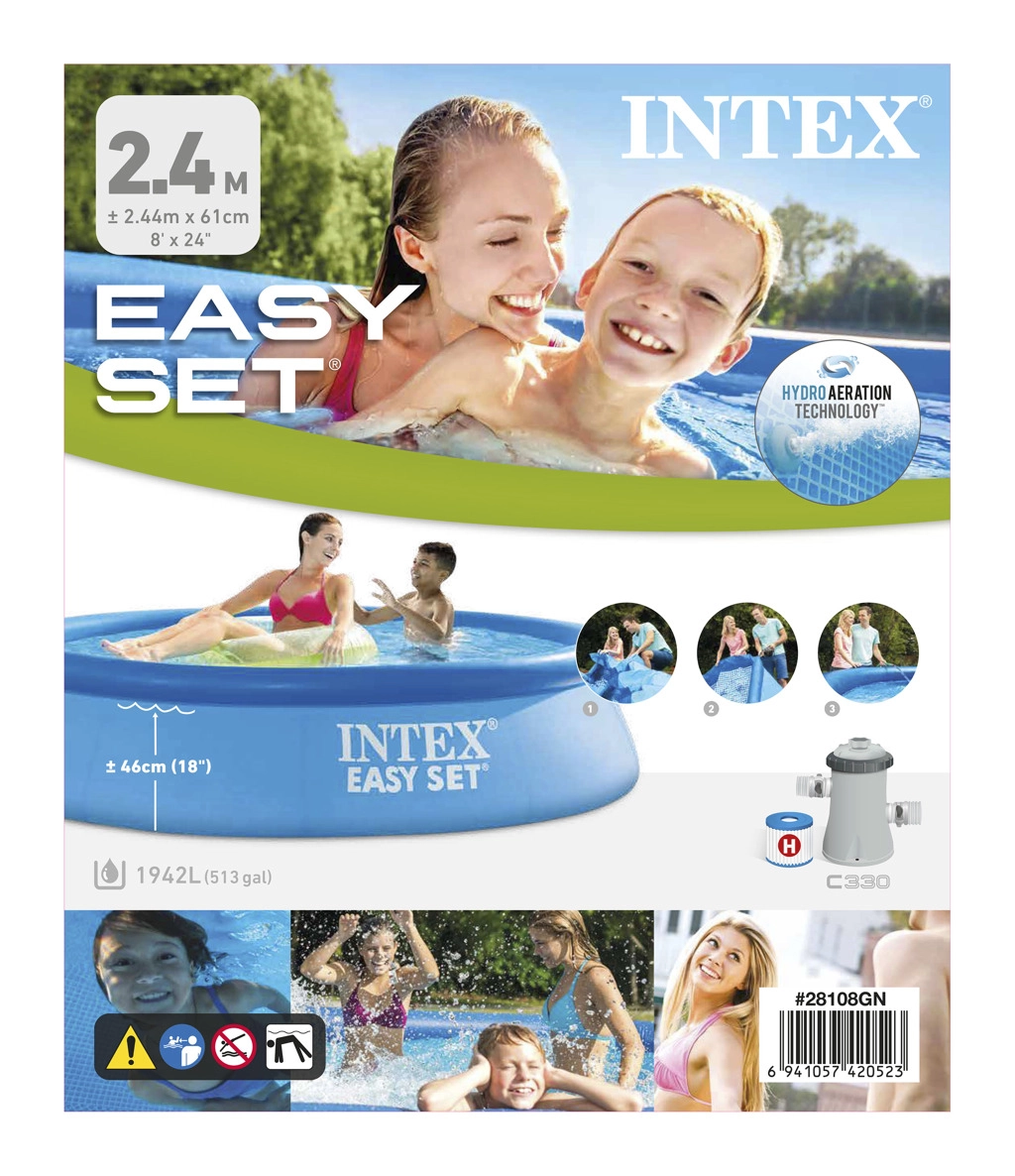 De Intex Easy Set zwembaden brengen comfort en plezier naar elke tuin. Dit compacte model met een diameter van 244 cm en een hoogte van 61 cm is ideaal voor gezinnen met kinderen – het biedt een veilige en comfortabele verfrissing met minimale installatie- en onderhoudsvereisten. Dankzij de 3‑laagse PVC-folie is het zwembad stevig, duurzaam en veilig.