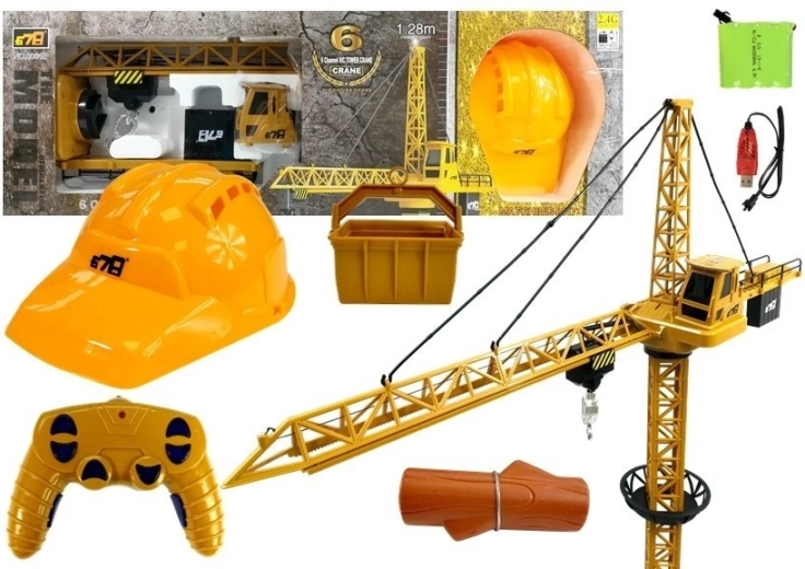Realistische RC bouwkraan met een hoogte van 128 cm brengt kinderen authentiek bouwplezier. Biedt heffen en neerlaten van lading, voor- en achteruit bewegen van de takelwagen en draaien van de bovenbouw naar rechts en links. Bediening via een draadloze afstandsbediening, en de hoofdunit wordt gevoed door een oplaadbare accu met USB-opladen. In de verpakking zitten ook accessoires voor het vervoeren van lading en een bouwhelm voor nog meer spelbeleving.