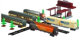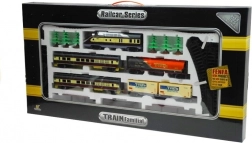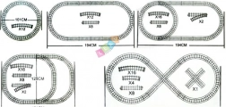 - Rijke set: locomotief, 4 wagons, bomen, rails en wissels