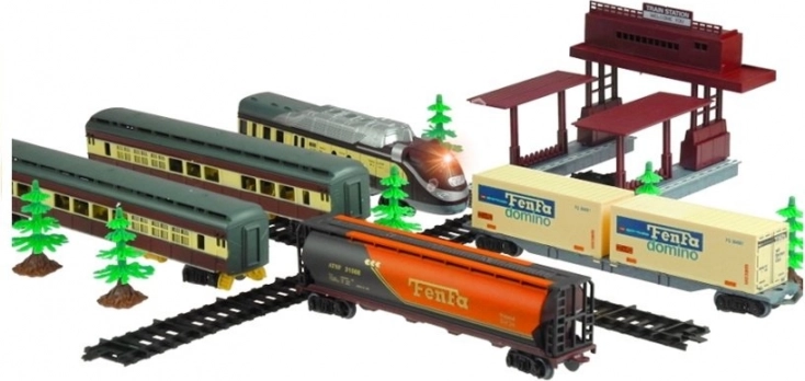 Deze grote FENFA-treinbaan biedt een realistische look en veel mogelijkheden om de rails in verschillende vormen en circuits te leggen. Dankzij de batterijlokomotief rijdt de trein echt en ontstaat de sfeer van een echt station. De set is ideaal voor gezamenlijke gezinsmomenten én voor zelfstandig spelen.