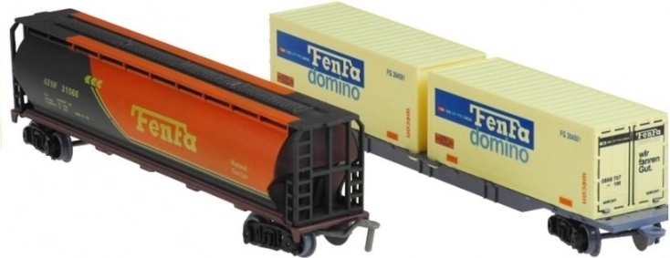 Grote FENFA-treinbaan met locomotief, 4 wagons en wissels