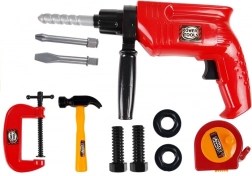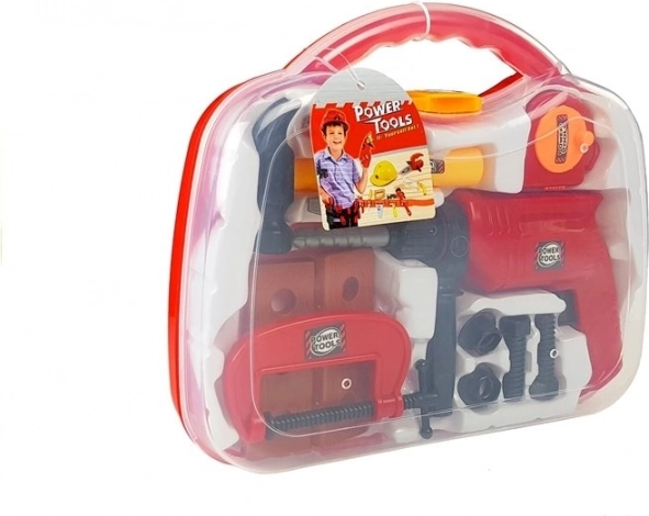 Een kinder-gereedschapsset in een praktische koffer brengt realistisch klussenspelen binnen handbereik. Bevat een boor met roterende bit, hamer, bankschroef, meetlint en andere accessoires. Spel stimuleert creativiteit, fijne motoriek en logisch denken. Licht en veilig kunststof materiaal en ergonomische afmetingen voor kinderhanden. Geschikt vanaf 3 jaar, voldoet aan CE.