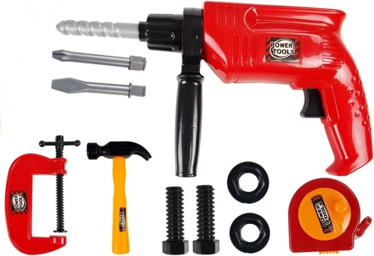 De set bevat alles voor fantasierijk spel: een boor met draaiende boorbit, hamer, bankschroef, meetlint, schroeven, ringen, verwisselbare boren en plaatjes. Kinderen trainen handvaardigheid, oog-handcoördinatie en samenwerking.