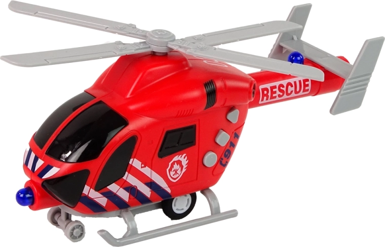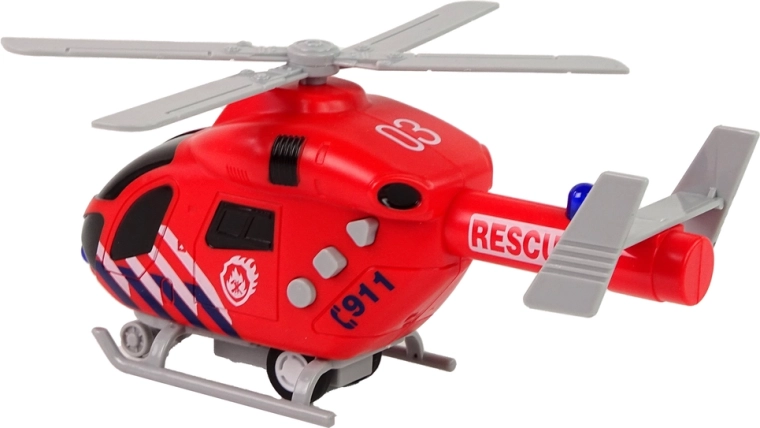 Onze reddingshelikopter is gemaakt van duurzame en niet-giftige kunststoffen, wat de veiligheid en vriendelijkheid voor de gezondheid van uw kind waarborgt. De helikopter heeft breed uitstaande vleugels, drie knoppen die kenmerkende geluids- en lichteffecten produceren, en bewegende wieltjes met wrijvingsaandrijving voor dynamisch spel.