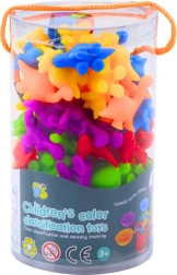 De set bevat een gevarieerde verzameling kleurrijke dinosaurussen en zes bekers in heldere kleuren waarin kinderen hun dinosaurussen kunnen plaatsen. Voor het spel is er ook een speciale pincet inbegrepen, die kinderen helpt de dinosaurussen te verplaatsen en op kleur te sorteren. Dit versterkt de motorische vaardigheden en de coördinatie.