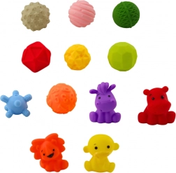 De set bevat verschillende vormen, dieren en kleurrijke texturen die de zintuiglijke ontwikkeling bij kinderen stimuleren.