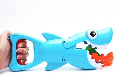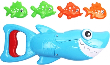 De plastic haai is de hoofdrolspeler van het spel, met een beweegbare kaak om de visjes te vangen.
