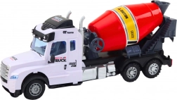 De betonwagen is uitgerust met een draaiende trommel en andere beweegbare onderdelen voor een realistische simulatie.