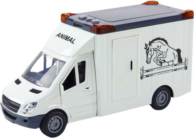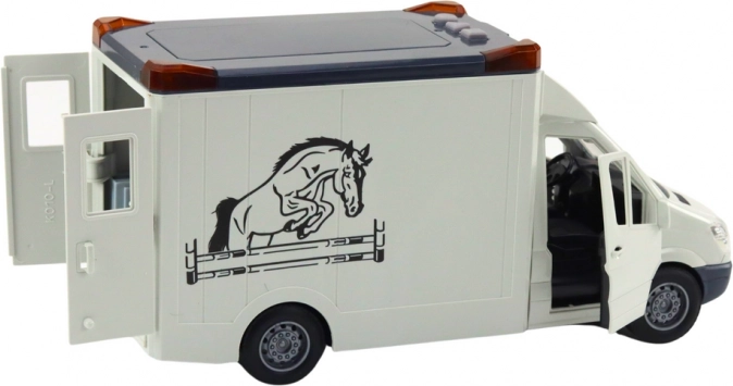 De transporteur is uitgerust met openslaande deuren aan de zijkant en achterzijde, wat het laden en lossen van paarden vergemakkelijkt. Het speelse ontwerp wordt aangevuld met een realistisch paardenfiguur, dat veel plezier brengt en de verbeelding van kinderen prikkelt.