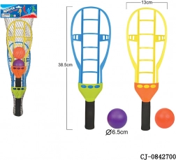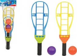 Een leuk en veilig behendigheidsspel met twee vangers en twee ballen, dat coördinatie, reflexen ontwikkelt en actieve beweging in de buitenlucht stimuleert. Ideaal voor in de tuin, het park en op het strand; voldoet aan CE en EN71, geschikt vanaf 3 jaar.