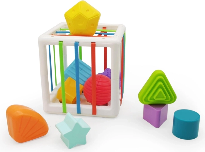 ⭐ Setinhoud: Het speelgoed bevat 6 verschillend gevormde onderdelen die in en uit de kubus kunnen worden geplaatst, goed voor uren creatief speelplezier.