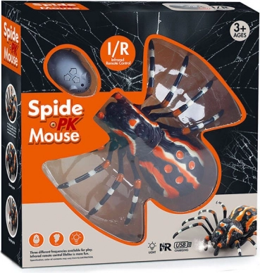 De infraroodafstandsbediening met twee knoppen zorgt voor intuïtieve bediening: met één knop rij je vooruit en met de andere maak je een 360°-draai. Het model is ideaal voor thuisplezier, kleine grapjes en als veilige “vervanger van een terrarium” voor kinderen die van spinnen houden.