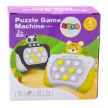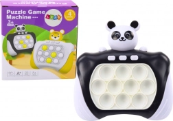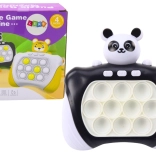 Een leuke en educatieve speelgoedconsole in de vorm van een panda die aanraakbare pop-it bubbels combineert met een elektronische console. Biedt 4 spelmodi voor training van geheugen, concentratie en reacties, heeft een compact, draagbaar ontwerp en geluidseffecten. Ideaal voor thuis en onderweg, voor solo en meerdere spelers.