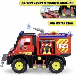 De brandweerauto Mercedes-Benz Unimog U530 is een geweldig speelgoed voor kinderen die van actie en avontuur houden. Deze rode auto, 50 cm lang, is uitgerust met licht- en geluidseffecten die authenticiteit en plezier aan elk spel toevoegen. Word onderdeel van een reddingsactie met zijn bewegende delen zoals openende deuren en draaibare assen.