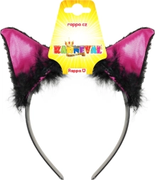 Carnaval hoofdband met kattenoren in roze-zwart en veren is een ideale accessoire voor elke kattenkostuum.