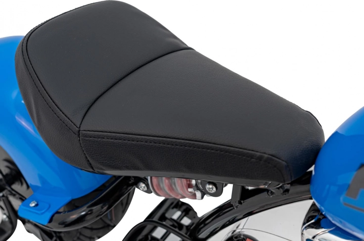 Voor de eerste meters in het zadel zijn er afneembare zijwieltjes die stabiliteit en zekerheid geven. Voor extra fun zorgen de voorste LED-verlichting, een verlichte motor en het audiopaneel met MP3, USB, ingebouwde melodieën en gesimuleerde motorgeluiden. Het comfortabele zadel van eco-leer garandeert gemak, ook bij langere ritten.