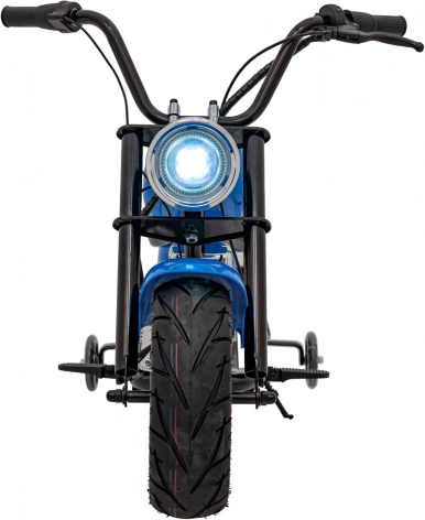 Geef kinderen een realistische motorervaring. Deze blauwe elektrische chopper combineert een aantrekkelijk design met doordachte veiligheid. De krachtige 350W borstelloze motor in combinatie met het 36V accusysteem zorgt voor een soepele en betrouwbare rit, terwijl opblaasbare wielen van 32 × 10 cm en achtervering comfort bieden op oneffenheden.
