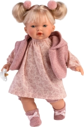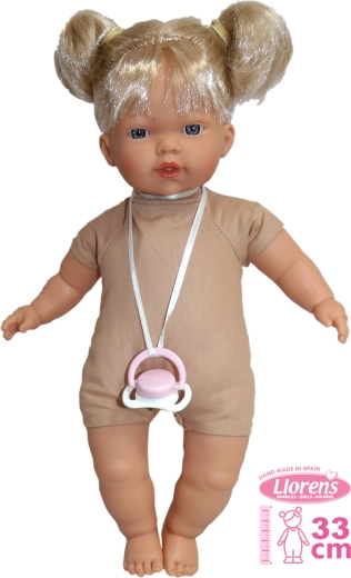 De pop Aitana is 33 cm lang en zorgvuldig handgemaakt in Spanje. De verpakking bevat 3 knoopcelbatterijen LR44 en een handleiding voor hun vervanging, wat het onderhoud van de functionaliteit van de pop vergemakkelijkt. Batterijen worden beschouwd als verbruiksartikelen, dus hun uitputting is geen reden voor reclamatie. Kleding is niet inbegrepen in de verpakking, het wordt aanbevolen om originele poppenkleding voor 33 cm poppen van Llorens aan te schaffen.