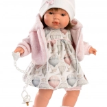 Het hoofd en de ledematen zijn gemaakt van hoogwaardige zachte vinyl. Na het verwijderen van de speen hoor je zinnen als "mama" en "papa" samen met realistisch gehuil dat gesust kan worden met een magnetische speen. Dit model is zonder kleding - ideaal in combinatie met originele Llorens kleding voor poppen van deze grootte. De pop is verpakt in een plastic zak. De verpakking bevat 3 stuks knoopcelbatterijen LR44 met instructies voor het vervangen.