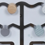 - Bovenkant: Bevat banen met kralen op draadvormen die het kind helpen precieze handbewegingen en concentratie te oefenen.