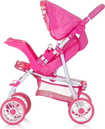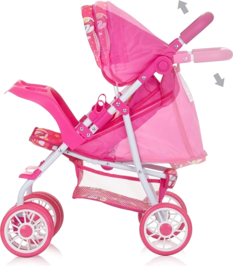 De CHIPOLINO poppenwagen DOLLY UNICORNS is een uitstekende keuze voor dagelijks speelplezier en het oefenen van zorgen. Het stevige metalen frame met stabiele dubbele wielen zorgt voor een soepele rit, terwijl de verstelbare rugleuning de pop zowel rechtop als liggend kan laten ‘reizen’. De verstelbare kap beschermt tegen de ‘zon’ en geeft de wagen extra stijl.