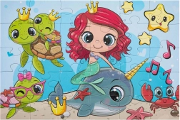Ontdek de magie van de onderwaterwereld met het betoverende zeemeerminmotief. De puzzel met 30 grote stukjes stimuleert de fijne motoriek, geduld en logisch denken van kinderen. Dankzij de grotere stukjes is hij perfect voor jongere kinderen, die plezier zullen hebben van de voltooide afbeelding van 29 × 18 cm.