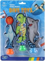 Een leuke set duikspeelgoed voor in het zwembad met thema’s uit de onderwaterwereld bezorgt elke kleine duiker plezier. Drie lichte speeltjes bewegen soepel in het water en nodigen uit om te vangen en te duiken, waardoor zelfvertrouwen in het water en coördinatie worden gestimuleerd. Gemaakt van duurzaam plastic, geschikt voor kinderen vanaf 3 jaar.