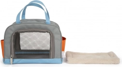 Een stevige en lichte tas met ventilatienet, vakken en een zacht matje maakt het mogelijk de kat overal veilig mee naartoe te nemen.