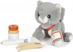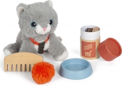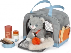 Deze rijk uitgeruste set bevat alles wat kinderen nodig hebben om hun pluchen lieveling te verzorgen. De kat met tuigje kan reizen in de comfortabele draagtas met matje, en wanneer nodig hebben kinderen hulpmiddelen bij de hand voor voeren, verzorgen en knuffelen. Het spelen voor kleine dierenartsen ontwikkelt op speelse wijze empathie en verantwoordelijkheidsgevoel.