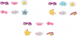 De set decoratieve pins (bril, bloemen, sterren enz.) zorgt voor een unieke look bij elk spelmoment.