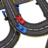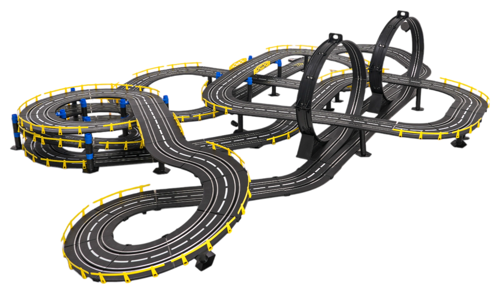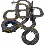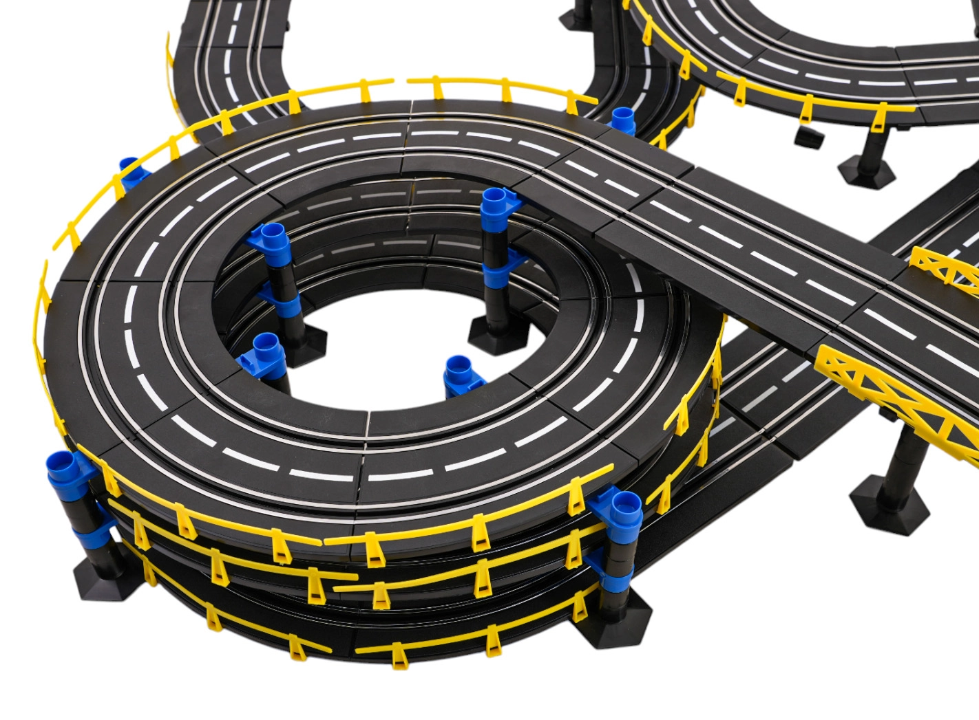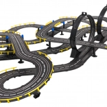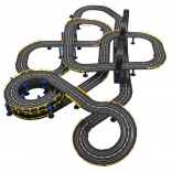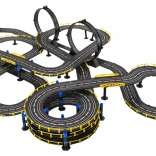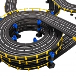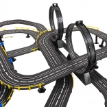 . | Grote racebaan in schaal 1:43 met twee radiografisch bestuurde autootjes voor kinderen vanaf 3 jaar. De afzonderlijke bouwdelen maken het mogelijk een baan te bouwen met scherpe bochten, spiralen en rechte stukken, alles voor maximaal plezier en extra spanning tijdens het spel. Deze unieke set is het ideale speelgoed voor kleine autosportliefhebbers. De baan is uitgerust met een rondeteller. Voeding: 220 V - 50 Hz. |