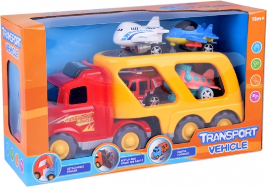 Grote trekker – autotransporter met vliegtuigen en helikopter met geluiden