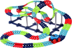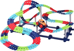 Bouw voor kinderen hun eigen racewereld: een lange, flexibele en bochtige racebaan-set met tot wel 291 onderdelen voor gekke loopings, bruggen en heuvels. De baan is tot 580 cm lang, bestaat uit kleurrijke segmenten en kan dankzij zuignappen ook op gladde muren of ramen worden bevestigd voor echte extreme constructies. Inclusief gemotoriseerd autootje met verlichting, rubberen banden op de achterwielen voor betere grip en een oplaadbare accu met USB‑kabel.
