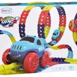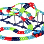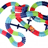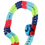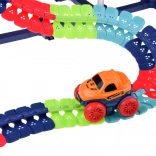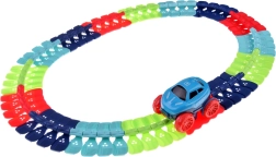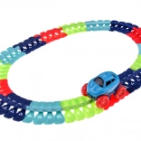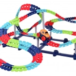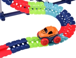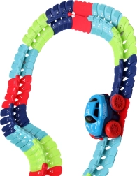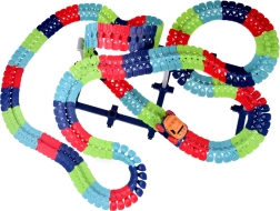 Deze kleurrijke racebaan stimuleert fantasie, fijne motoriek en geduld. Dankzij de flexibele koppelingen kun je de baan vrij vormgeven, buigen en aanpassen – van korte sprints tot grootse parken vol plezier. Het autootje met LED‑lichten rijdt na het inschakelen vanzelf en kan ook scherpere bochten aan.