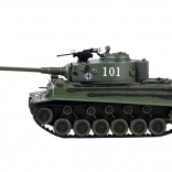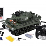 In de verpakking zit alles voor direct plezier: een 2,4 GHz controller, oplaadbare accu 7,4 V 1200 mAh, USB‑laadkabel, doel en munitie. De tank heeft een robuuste constructie, brede rupsbanden voor moeilijkere omstandigheden en LED‑lichten die aangaan na inschakelen. Ideaal als cadeau voor kleine en grote fans van militaire techniek.